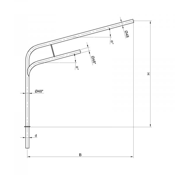 Двухрожковые кронштейны К9-2,0-2,5-1-1 предназначены для крепления светильника на трубчатой опоре освещения.